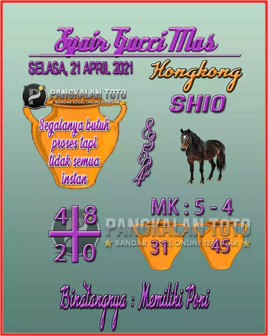 Syair togel hongkong memang kerap terkait dengan angka keluaran hongkong yang hendak muncul di masa nanti. Dalam Berkenaan ini beberapa baik dapat memaksudkan dan mengartikan syair togel online hk itu akhirnya bisa memperoleh angka yang pas di masing-masing kali penempatan taruhan judi di Bandar Togel Online JOGJATOTO. Punyai beberapa keuntungan yang bagus sekali berkaitan dengan penempatan taruhan togel dengan sistem online. Dengan penempatan sama sesuai perhitungan sampai akan mendapati berkali-kali kemenangan. Silakan gunakan syair togel hk ini untuk mendapati angka tepat untuk meraih kemenangan besar.