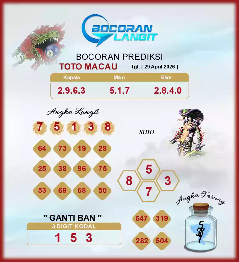 Syair togel Toto Macau adalah kode gambar yang dikeluarkan ke publik untuk menolong pemain judi togel supaya dapat semakin gampang untuk menang di menerka-nerka angka togel. Hal ini dikerjakan untuk dapat memperoleh kode syair togel karena itu pemain dapat segera membuka situs prediksi togel online yang telah disiapkan dengan fasilitas online. Situs Prediksi JOGJATOTO sendiri memiliki beberapa situs prediksi togel yang dibikin oleh beberapa master togel yang telah eksper yang mempunyai mimpi dapat menolong beberapa pencinta togel menang di beli nomor togel.